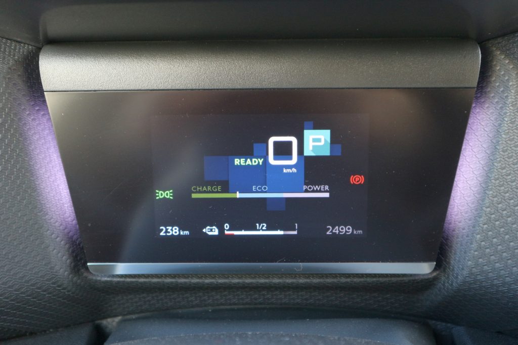 Megszokható de azért zavaró apróság, hogy az ë-C4 számos funkciója késik egy kicsit. A kulcsnélküli nyitás-zárás kilincsérzékelője, az indító-leállító gomb, a váltókapcsoló: mindig egy hajszálnyival többet kell várni a reakcióra, mint ami természetes lenne. A kocsit többször hagytam ott járó motorral (illetve izé: nem leállított, menetkész állapotban), néha nyitott ajtókkal, mert egy kicsit még tovább kellett volna rajta tartanom az ujjam a gombon illetve a kilincs recézett felületén.