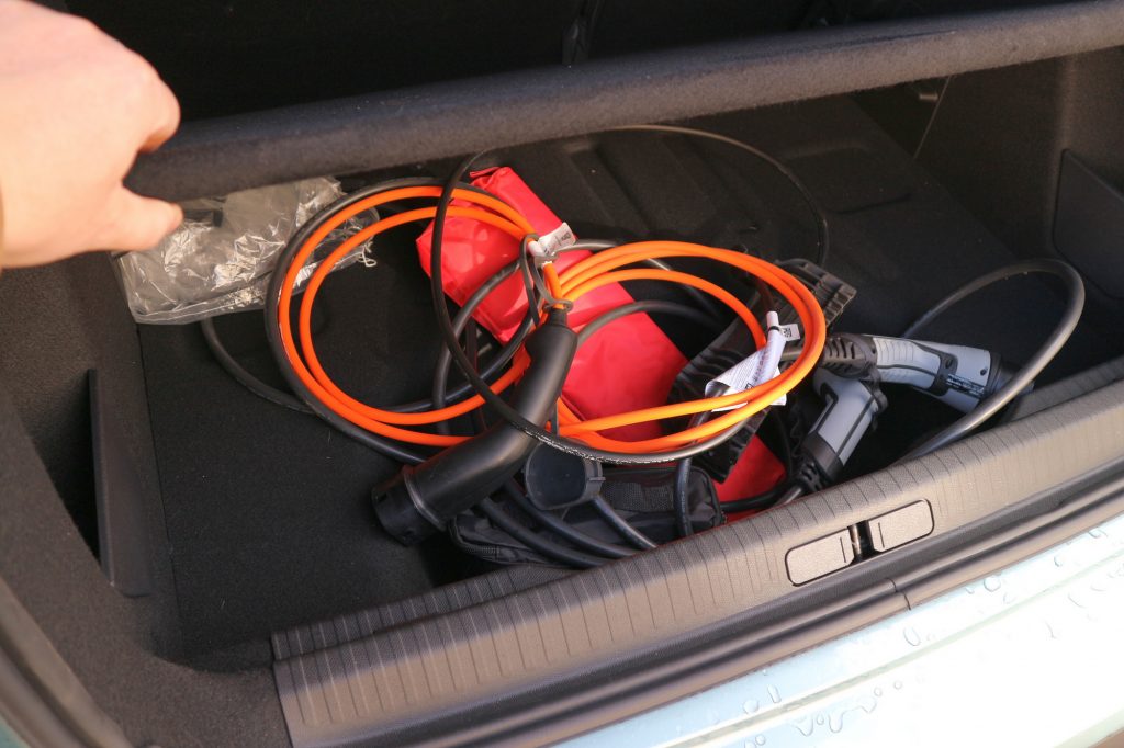És akkor megint egy kis bosszús mormogás: hiába villanyautó, hiába tudja mindenki, hogy az elektromos áram vezetékeken közlekedik, ebben a kocsiban sem sikerült praktikusan megoldani a töltőkábelek elhelyezését. A padló alatti rekeszben legalább nincsenek szem előtt, de nem valami kényelmes dolog mindig innen kikotorni a mazzagot és nem túl elegáns ide visszatenni se őket, koszosan, sárosan. A benzines/dízel C4-gyel azonos "tanksapkafedél" pedig ezen a villanyautón túl nagy; garantált, hogy záros határidőn belül beleakad valaki és letöri. Egy elektromos autó több időt tölt konnektorba dugva, mint egy benzines a kúton, de ez, úgy tűnik, a Citroënnél se jutott eszébe senkinek. Az is fura, hogy a tesztautóban kormányfűtés volt, ülésfűtés nem: egy villanyautóban alap (kellene, hogy legyen), hogy a kisebb energiaigényű testfűtés eleve ott van minden kocsiban. Az elektromos rendszert bizonyára egy dél-francia mérnök tervezte...