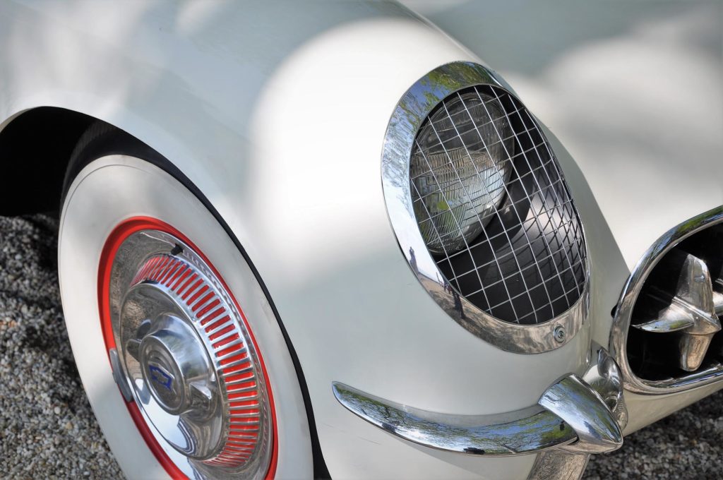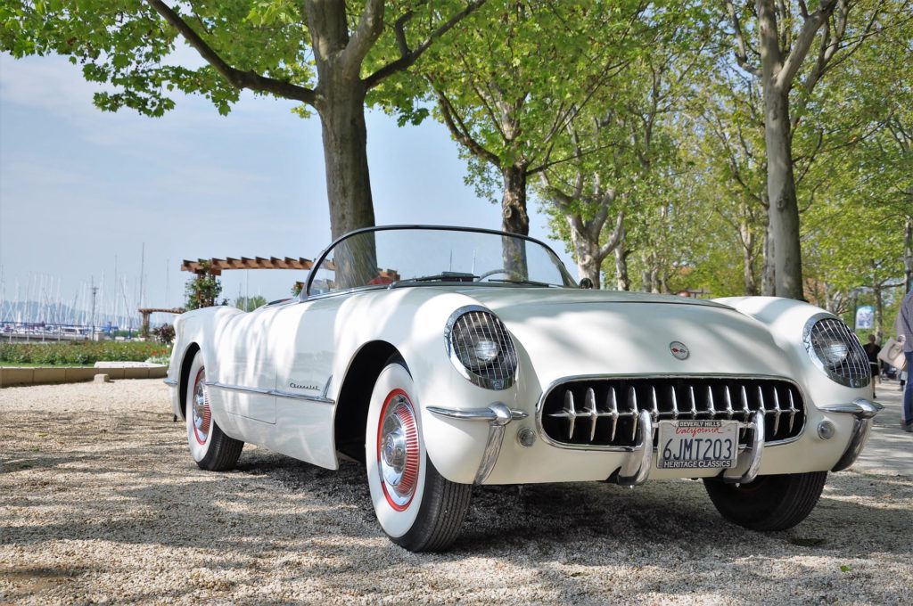 Amerikai autót is találsz a sétányon, mindjárt itt van a Corvette első szériája, amit a brit roadsterek sikere hívott életre 1953-ban. A kétüléses sportkocsi érdekessége volt, hogy itt használtak először a nagy sorozatban gyártott autók között műanyag karosszériát. 3,6 literes soros hathengeres motorja 152 lóerős, ami már akkor is kevésnek bizonyult, ezért a C1-es széria csak két évig maradt gyártásban.