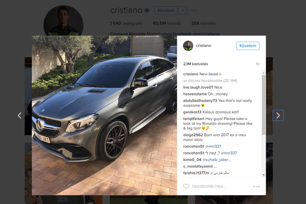 Új fenevad – mindössze ennyit írt új autójának képe mellé Cristiano Ronaldo, akinek garázsában egy Ferrari 599 GTB és egy Lamborghini Aventador mellett egy Bugatti Veyron is áll már. Ronaldónak nem a GLE Coupé a legérdekesebb példány a gyűjteményében, de vélhetően a napi autózásra vette a pompás sportkocsik mellé.