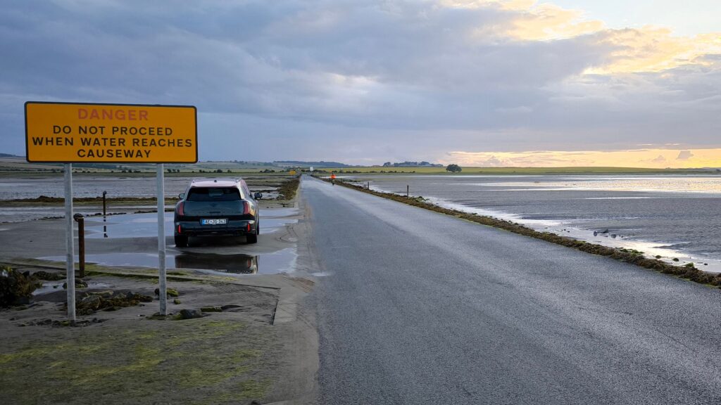 Más volt a helyzet Holy Islandnél, amely egy olyan sziget, amit mindenképp naponta csak kétszer hat órán át lehet elérni száraz lábbal, vagy gumival, amikor a dagály épp nem borítja el az oda vezető utat. Eszméletlenül romantikus és érdekes maga a bejutás is, maga a sziget is, naplemenetével kombinálva pedig igazán észbontó tud lenni ez az egész.