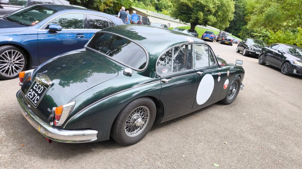 A brit utakon, ha nem is gyakran, de azért tíz nap alatt már kellemesen sokszor találkozhattunk olyan öreg autókkal, amelyeket nem akart múzeumban tartani gazdája. (Aki szereti az ilyesmit, szervezze úgy az utazását, hogy beleessen egy veterános rendezvény, akkor sokkal-sokkal több, érdekesebb veteránt láthat közúton mozogni!) Egy gyönyörű Mk II-es Jaguar gazdáját sikerült is elkapnom pár szóra egy golfklub parkolójában, ahová (mármint a klubházba) egyébként pisilni tértünk be egy hosszabb etapon.
