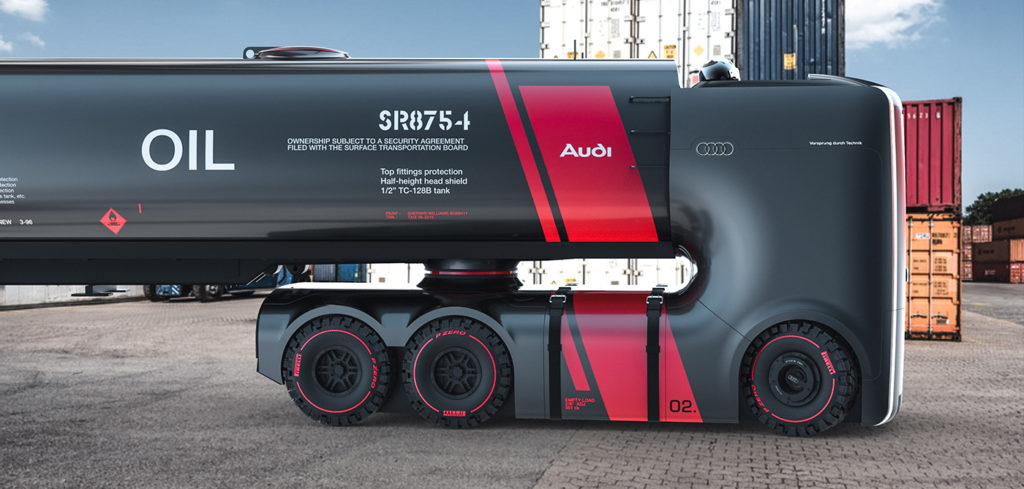 A fehérorosz Artem Szmirnov és az ukrán Vlagyimir Pancsenko elképzelte, milyen lenne, ha a jövőben az Audi kamiont is gyártana. Az Audi Future Truck projektben két nyerges vontató is készült, és az egyik jobb, mint a másik. A fehér egy önvezető példány, elektromos hajtással, amely a jövő autópályáira készült. A fekete pedig egy olyan tanker, amit inkább show-célokra terveztek, ennél a vezető és utasa a fülke tetején kapott helyet.