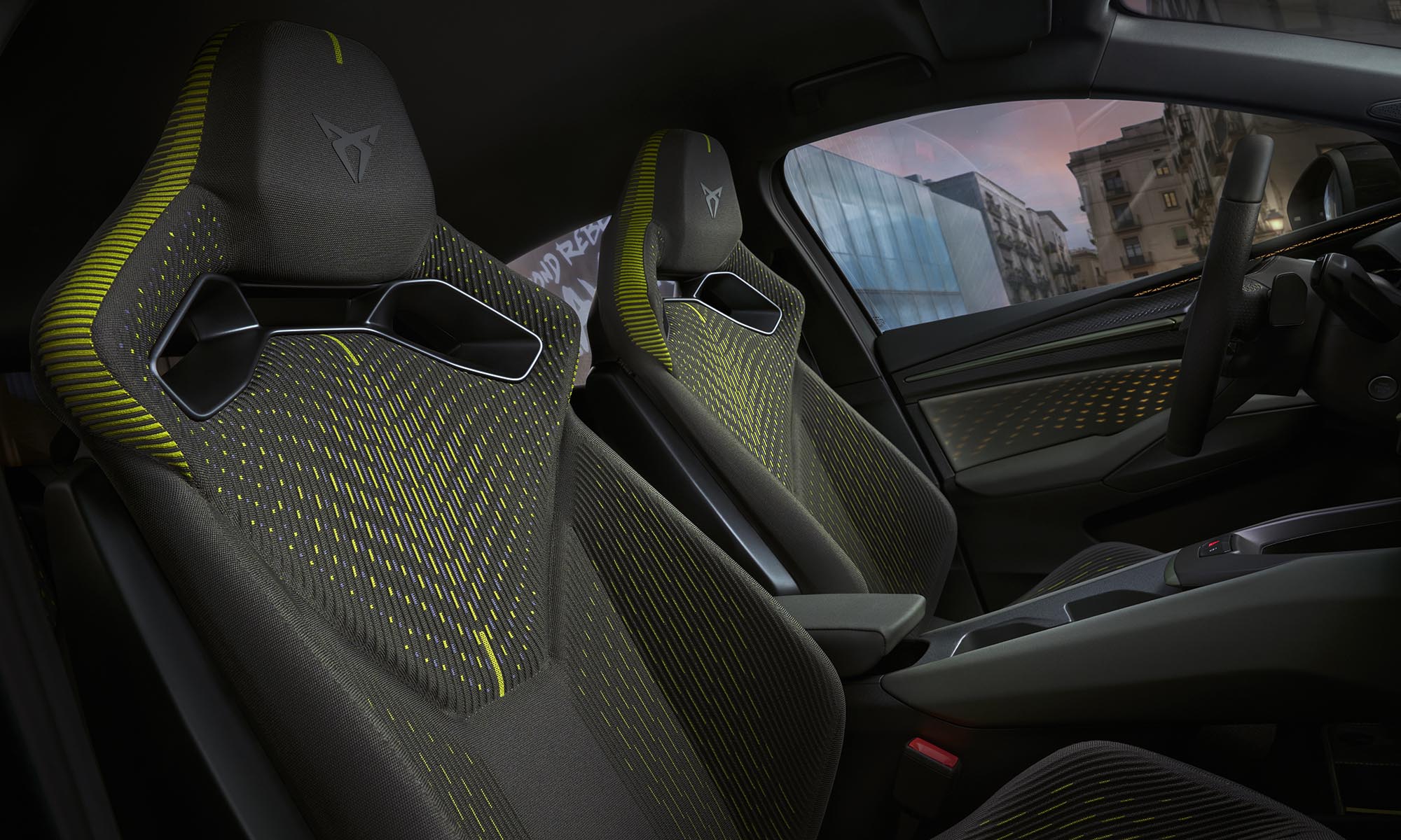 A márkától megszokott módon a Cupra Raval is a dizájnjával hódíthat a hasonló kategóriájú elektromos kisautók között. A magas építésű karosszériát sportos, éles vonalakkal alkották meg, elöl és hátul is világítanak az emblémák, elérhető a matt festés, és van egy pár részlet, ami egészen szokatlan a kisautók között, például ilyenek a megvilágított, karosszériába süllyesztett kilincsek és a fényjátékkal köszöntő mátrixfényszórók.