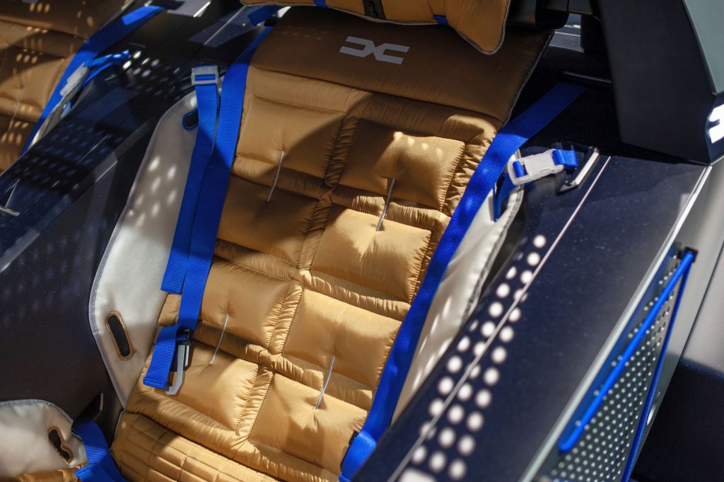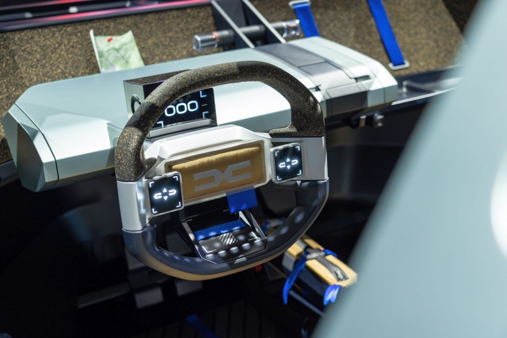 Ami nem látszik elsőre: a fenntarthatóság jegyében a kocsikról eltüntették szinte az összes króm díszítőelemet, az utastérből pedig az állati bőröket (ami azért, lássuk be, a Daciának könnyebb feladat volt, mint mondjuk a Bentley-nek lenne).