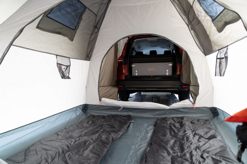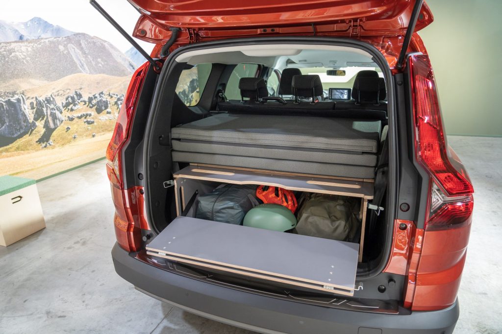 A Daciának láthatóan olyan remekül megy a sora, hogy a cégnél egy csomó idő és lehetőség van játszani, ötletelni, kreatívkodni, olyan egyedi gyári megoldásokat kitalálni, kipróbálni, amelyekkel ritkán szokás foglalkozni a budget-márkáknál. Erre volt az unalmasabb példa a bemutatón a biztonsági innováció, amely a legolcsóbb Daciáknál praktikusan a műszerfalra csíptethető mobiltelefon frontkameráját használja a sofőr fáradtságának figyelésére. Ha a háttérben futó al-alkalmazás szoftvere úgy látja és úgy számolja, hogy a vezető már túl régóta ül a volánnál, bólogat, álmos, szól, hogy ideje lenne megállni pihenni és a mobil naviját aktiválva rögtön mutatja is, hol a legközelebbi pihenő, ahol lehetne szundikálni egyet. Ennél a szegényember fáradtságfigyelőjénél persze sokkal izgalmasabb az az ötvenkilós láda, amellyel a Joggerből szegényember kempingbusza varázsolható: