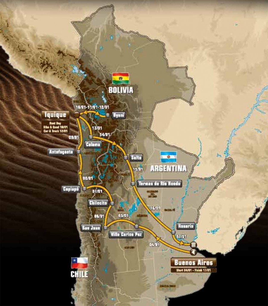 A 2015-ös Dakar mezőnye január 4-én rajtolt Buenos Airesből, Chilén majd Bolívián keresztül összesen mintegy 9000 kilométert tezsnek meg, és Buenos Airesben lesz a befutó is 17-én.