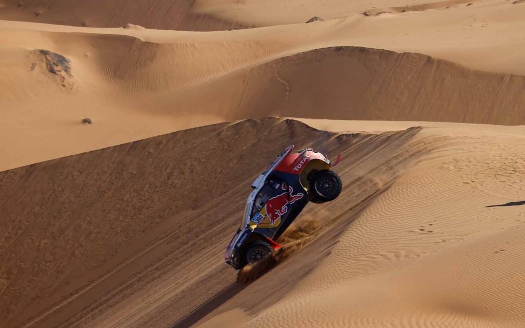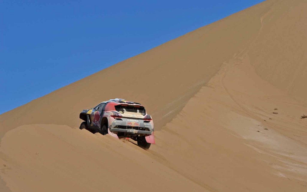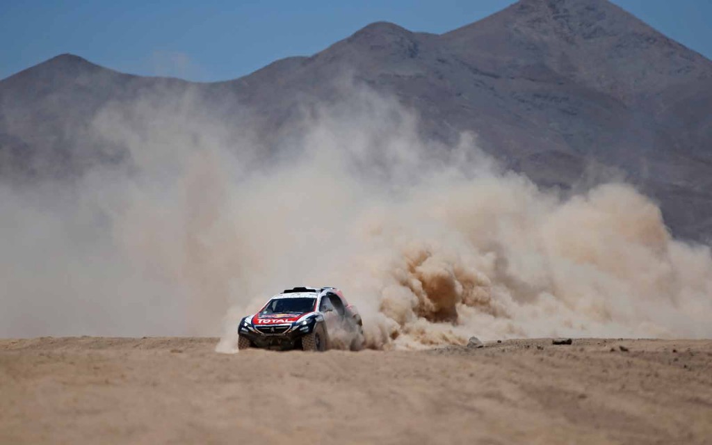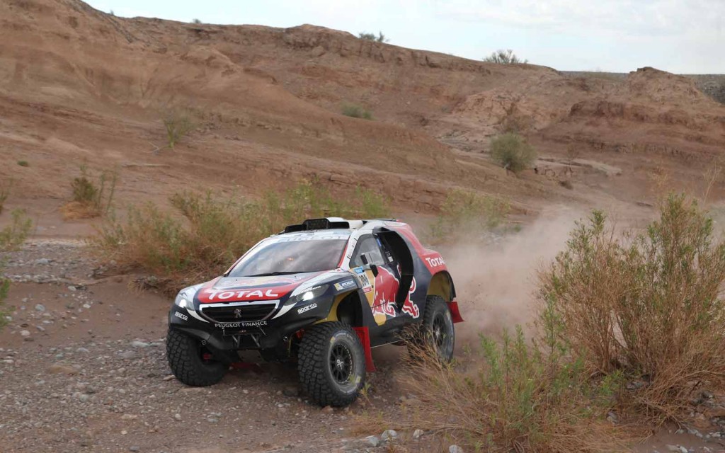 A nagy visszatérő Peugeot versenyzői közül addig legjobban teljesítő Sainz már nincs versenyben: pénteken egy quados porfelhőjében autózva sziklának ütközött, és bár ő és navigátora, Lucas Cruz nem sérült meg, fel kellett adniuk a futamot. Peterhansel Jean-Paul Cottret-vel az összesített tízedik helyen kezdte meg a szombatot, Depres Gilles Picard-ral pedig a 45. helyre jött fel.
