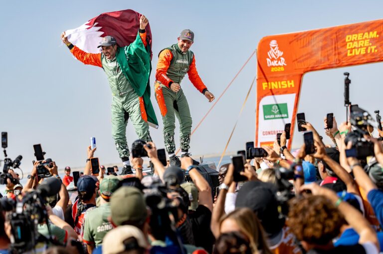 A katari pilóta és navigátora, Fabian Lurquin rendesen kiszámolták a tempót. Nem ők nyerték a legtöbb szakaszt, de ők hozták a legbiztosabb teljesítményt, még a hatodik napon a brutális, 925 kilométeres szakaszon is.