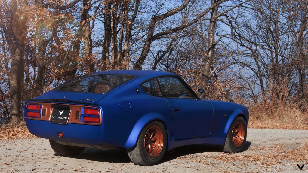 A 280Z ezért modernizáló kúrán esett át, a fényszórók és a hátsó lámpák LED-esek lettek, és a Z felirat is háttérvilágítást kapott. A karosszériának a matt kobaltkék fólia és a Vilner védjegyének számító bronzszínű elemek adnak egyedi kinézetet.