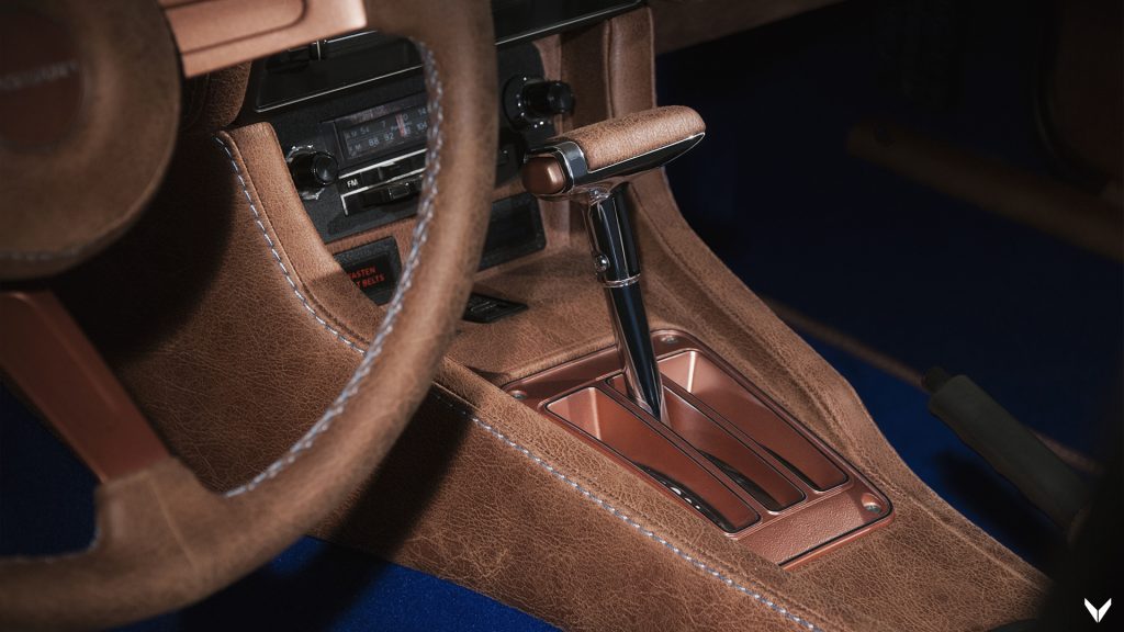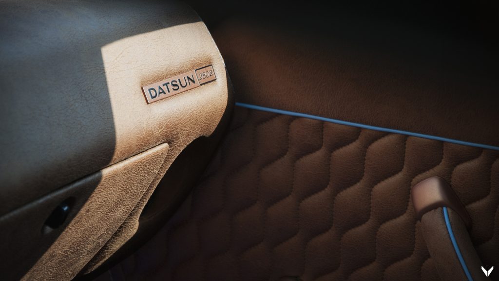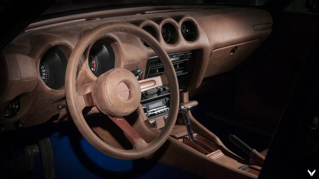 A lökhárítóitól megszabadított 280Z-nek az utasterét retró stílusban dolgozták át. Szinte minden felületet vintázs hatású bőrrel borították be, a szőnyegek és a biztonsági övek a külsővel harmonizáló kék színűek.