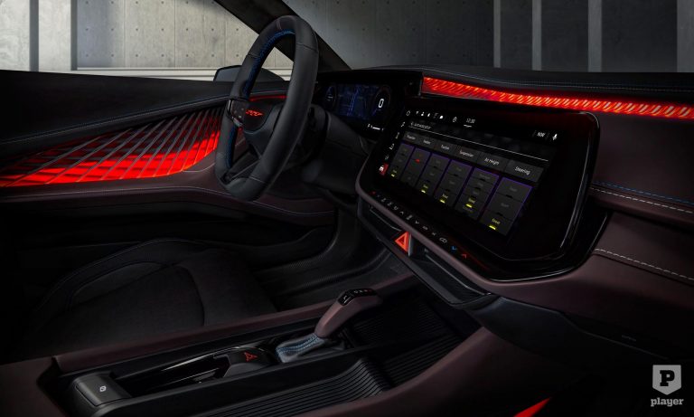 A belső tér is egyesíti a múltat a jövővel, a 16 colos műszeregység mellé 12,3 colos érintőképernyő és head-up display is került, a vörösen izzó hangulatfény izgalmas részlet.