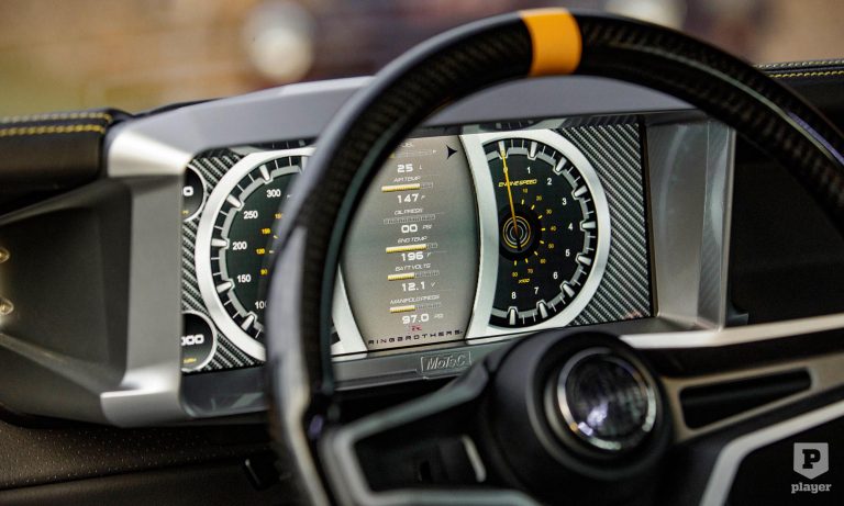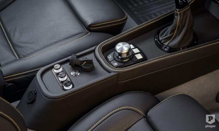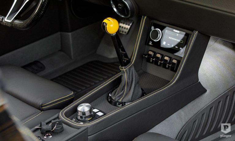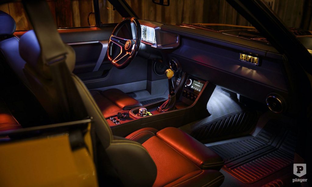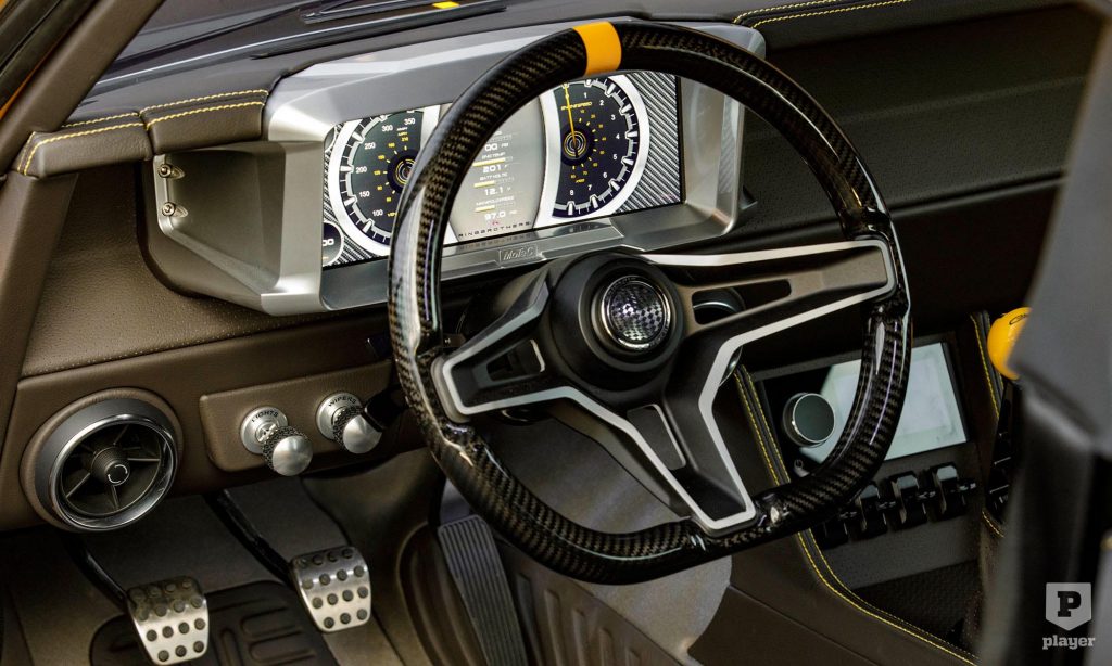 A belső tér teljesen modern, de retró stílusban öltöztették fel, a koronát a szénszálas anyagból készült kormánykerék tette fel rá.