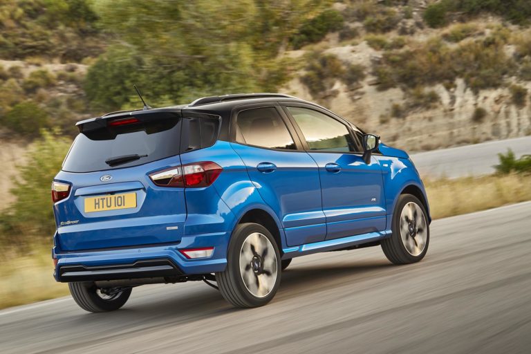 Mint a többi Fordnak, úgy ennek is van már ST-Line változata, ami még sportosabb külsőt jelent. 17 vagy 18 colos kerekein, élénk színekben, akár eltérő színű tetővel az EcoSport sokkal dögösebb lett az eddiginél. Jót tett neki az is, hogy néhány éve elhagyták a pótkereket a hátfaláról.