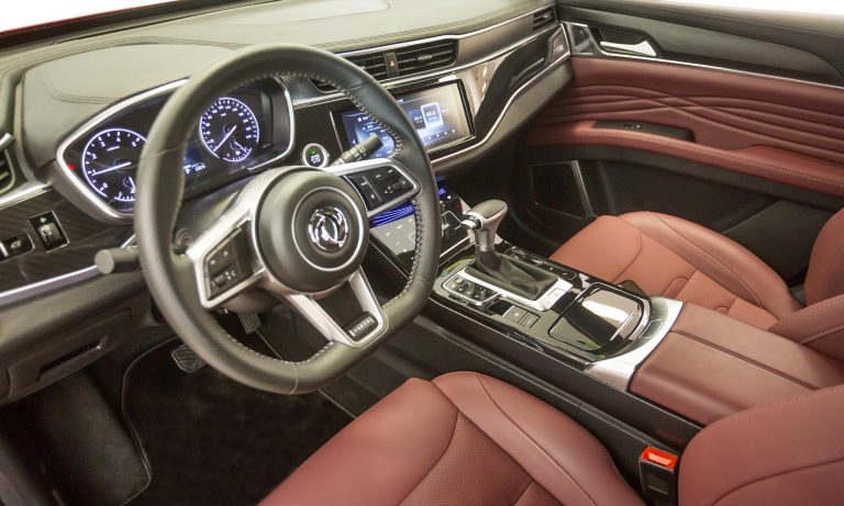 a bőrkárpit, a panorámatető és a vezetési asszisztensek, mint az autonóm vészfékező és a sávtartó sem hiányzik.