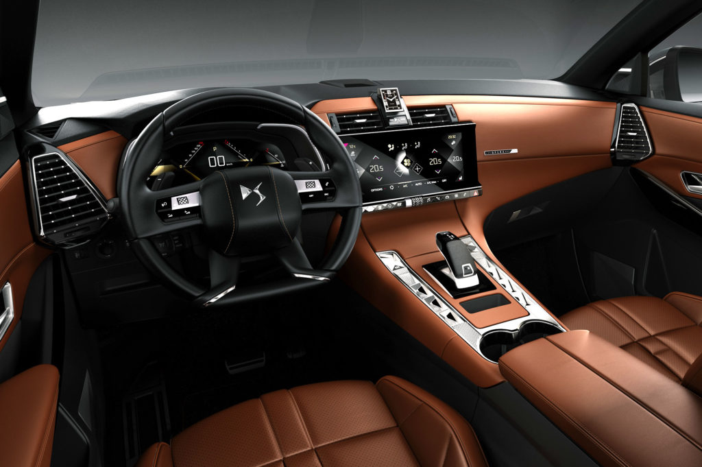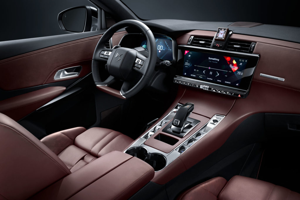 A DS 7 technikája is naprakész, hiszen a vezető előtt két darab 12 colos képernyő van: a kormánykerék mögötti a műszereket helyettesíti, a középen lévő érintőképernyőn pedig minden mást lehet kezelni. A DS 7-ben van félig önvezető segéd sávtartóval és távolságtartóval, automatikusan parkoló asszisztens, és még éjjellátó infravörös kamera is.