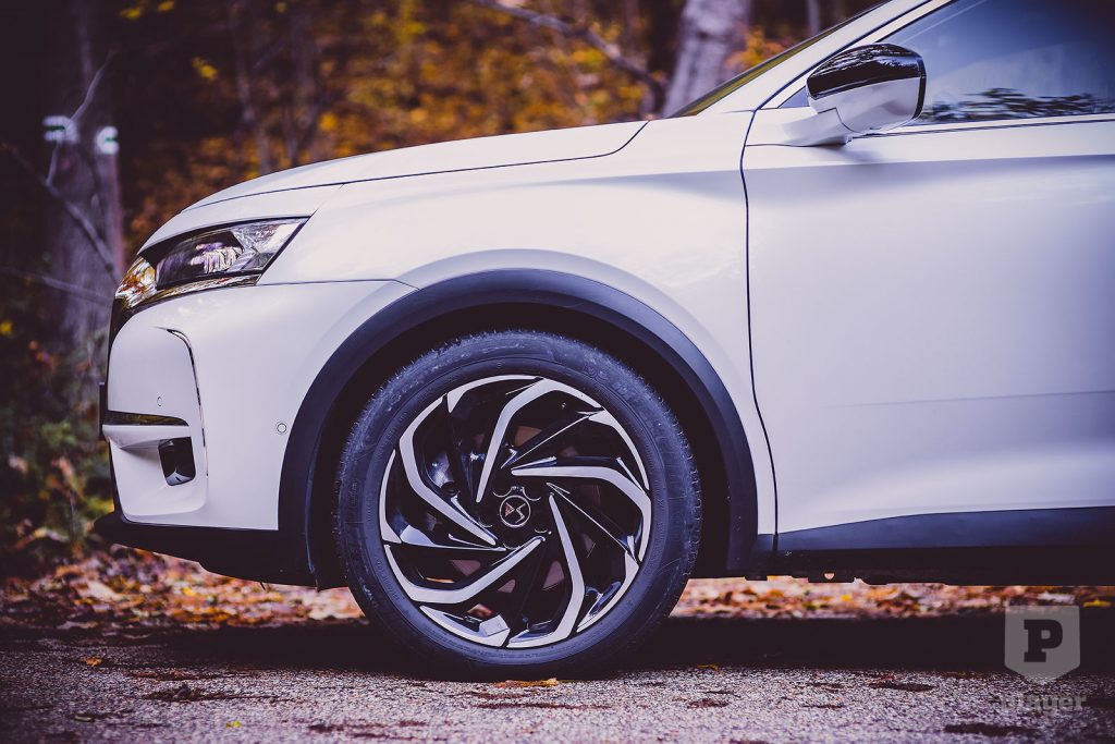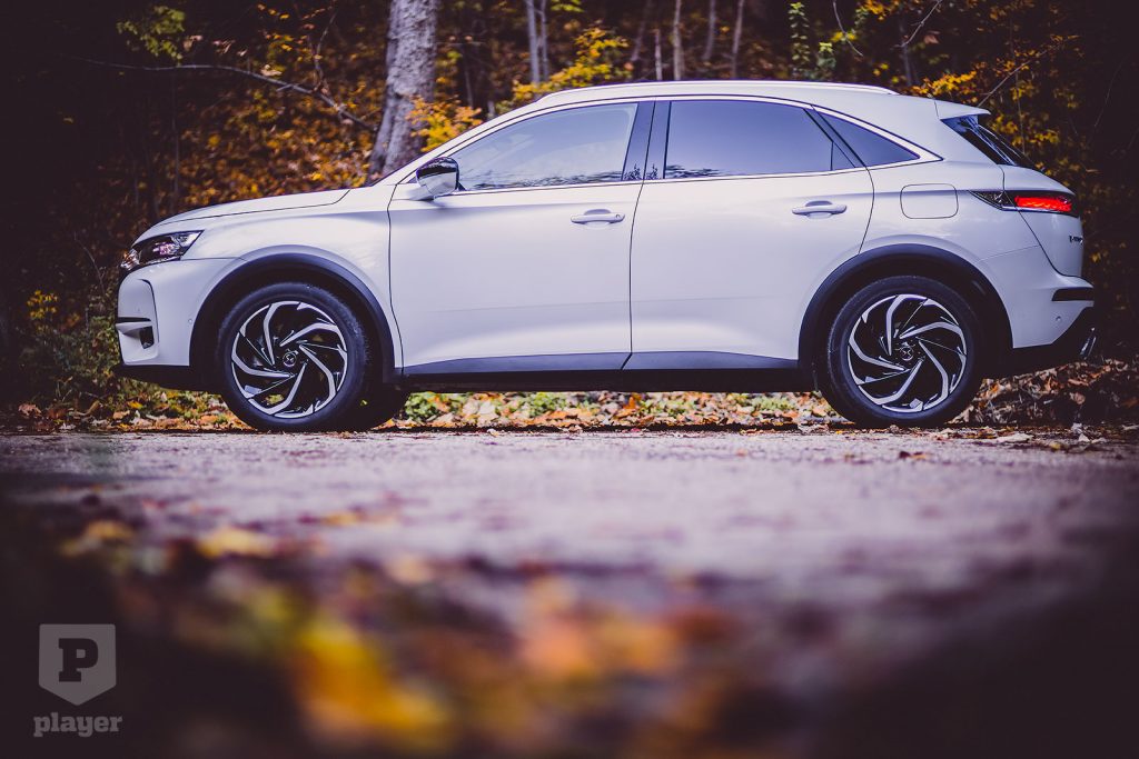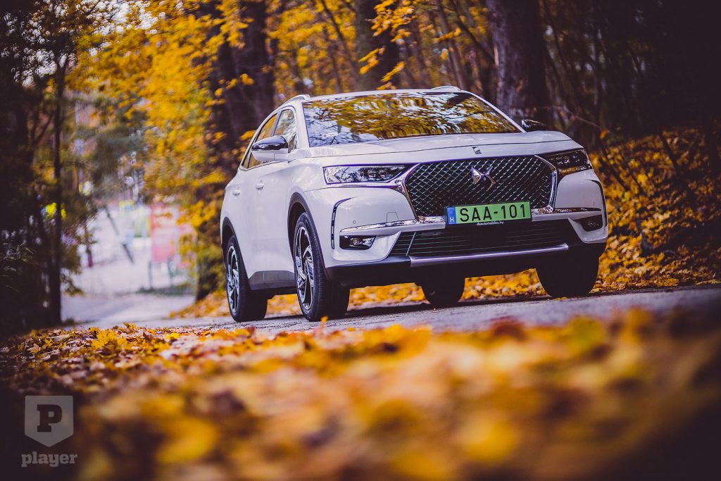 Baljós, hogy alanyunk, a DS 7 Crossback a Peugeot 3008-cal, az Opel Grandland X-szel és a Citroën C5 Aircross-szal is közös alapokat használ – érthető és bevett költségcsökkentési szokás az autóiparban, csak hát az egyediség ugye… Ha messziről ránézünk, nem is látunk semmi extrát, ilyen ma egy nagyobbfajta SUV. Kellemes forma, átlagos arányok és fehér szín.