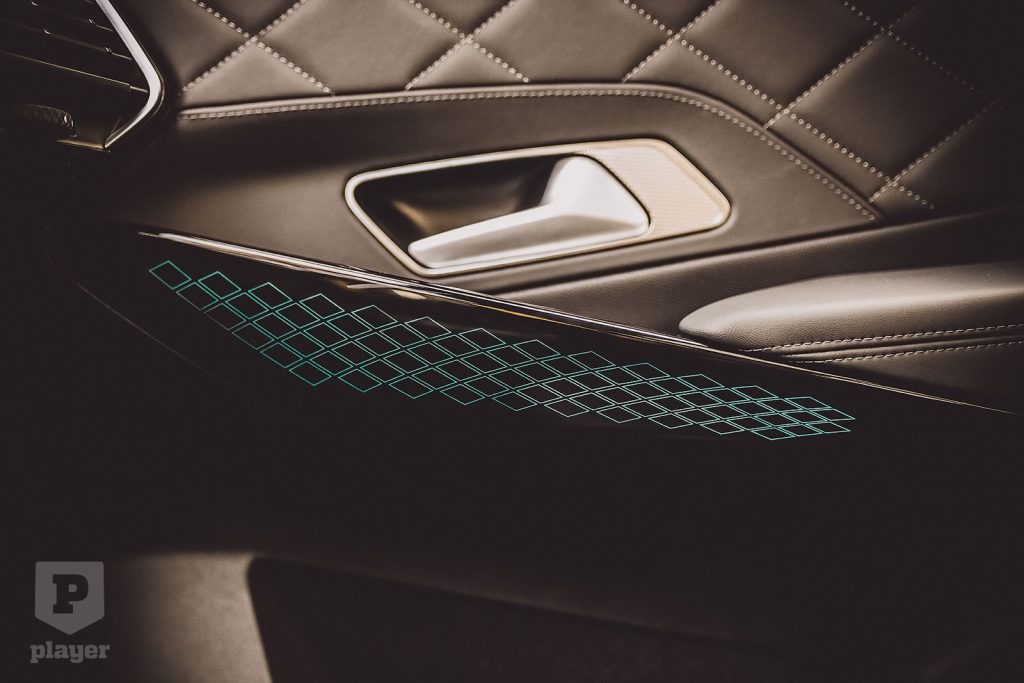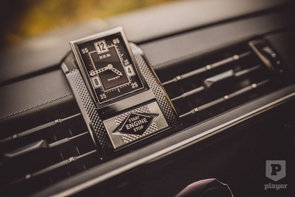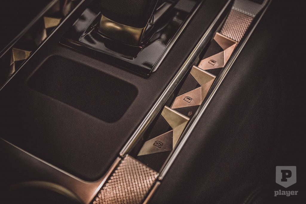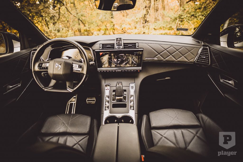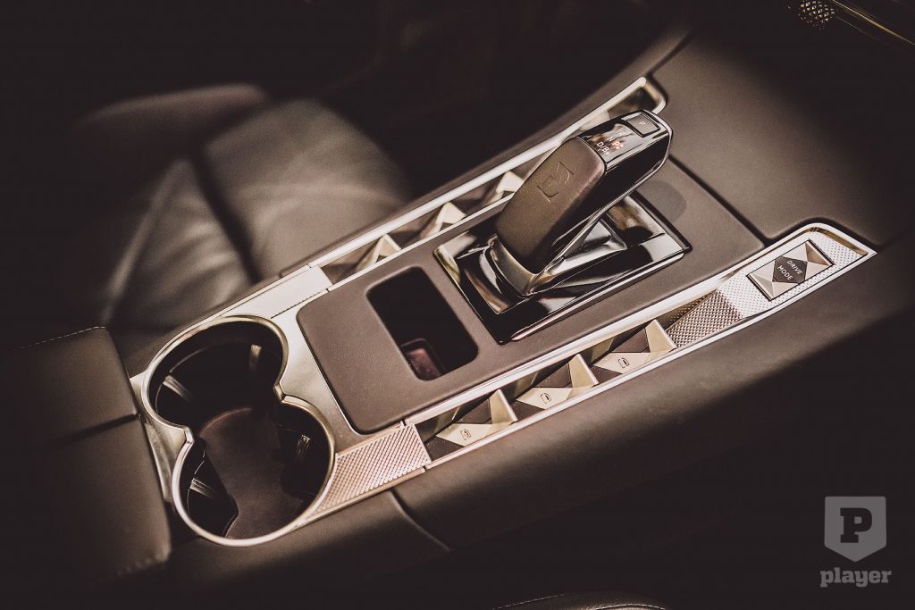 Még az olvasólámpák is négyzetesek, a tekerőgombok mintázata rombuszhálós, a váltókar melletti billenőkapcsolók Clous de Paris gilosálással készültek, ami egy spéci marási technikát jelent, és az egymást metsző piramisformákból adja ki az egyedi mintázatot. A téglalap alakú, egy nagyobb rombuszban lévő kisebb rombuszt ábrázoló, mini piramisokkal szegélyezett indítógombot megnyomva lassan kifordul felette a francia B.R.M luxusóramárka DS-be tervezett mutatós órája.