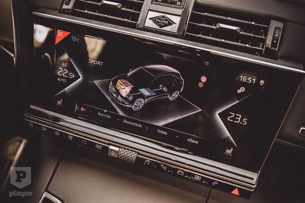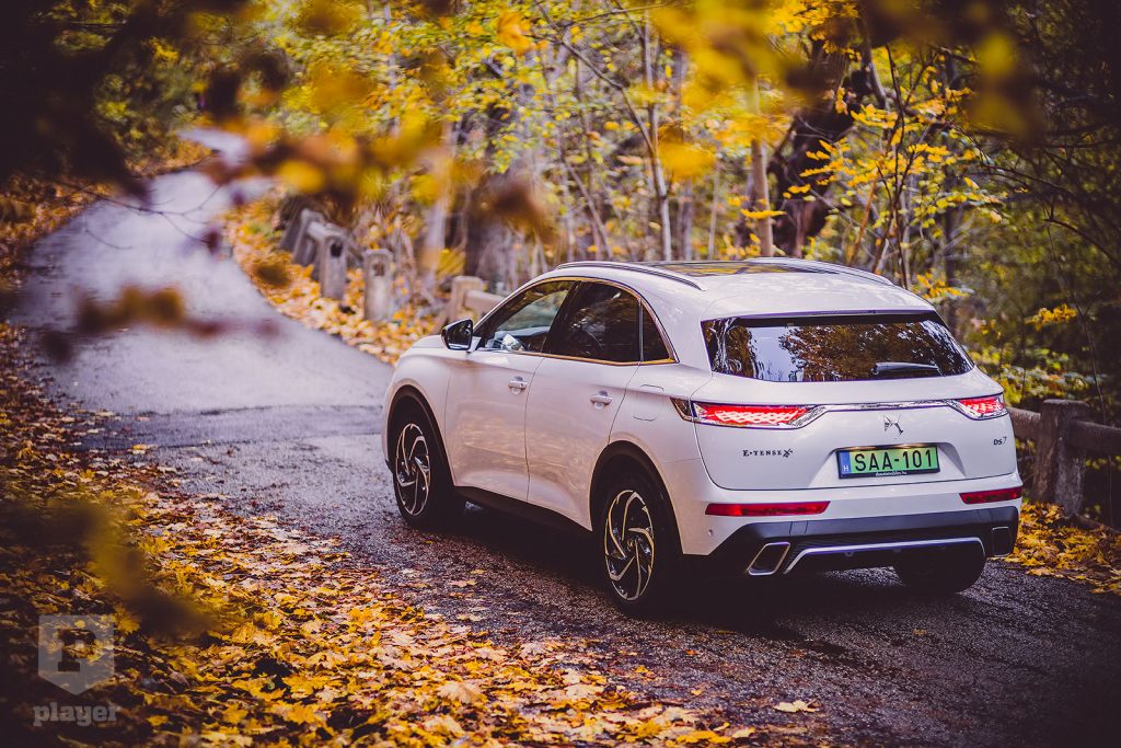 A képeken is szereplő csúcsváltozat, a DS7 E-Tense 4x4 bizony meggyőzően tud. A sima E-Tense-szel ellentétben itt nemcsak az első, hanem a hátsó kerekekhez is került egy 110 lóerős villanymotor, ezek és az 1,6 literes, 200 lóerős, négyhengeres benzines turbómotor 300 lóerős rendszerteljesítményt és 520 Nm maximális nyomatékot ad ki, ami 5,9 másodperc alatt gyorsítja nulláról százra az üresen is több mint 1,8 tonnás karosszériát. Ez igen szép, mégsem a száguldás a lényeg: a DS 7 futóműve és egész karaktere a nyugodt, kényelmes, de akár nagy tempójú utazást szolgálja, nem a csapatást, konnektorról feltöltve pedig a valóságban is úgy ötven kilométert lehet megtenni vele teljesen elektromos üzemmódban, tehát mérete és SUV-mivolta ellenére akár városban is helye van.