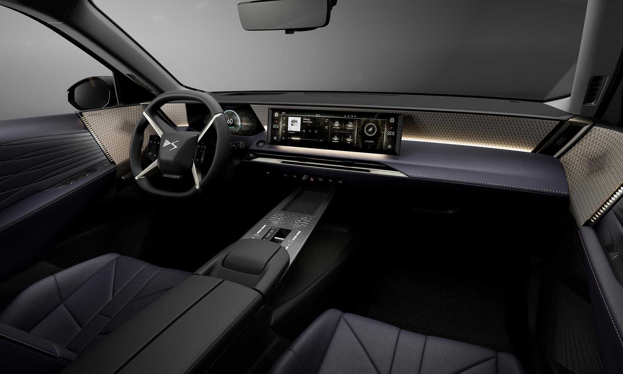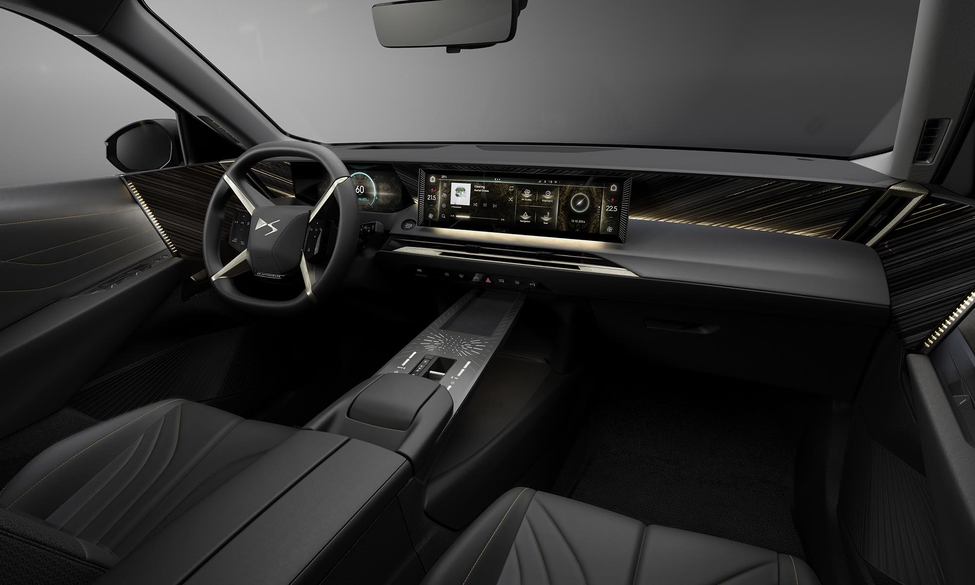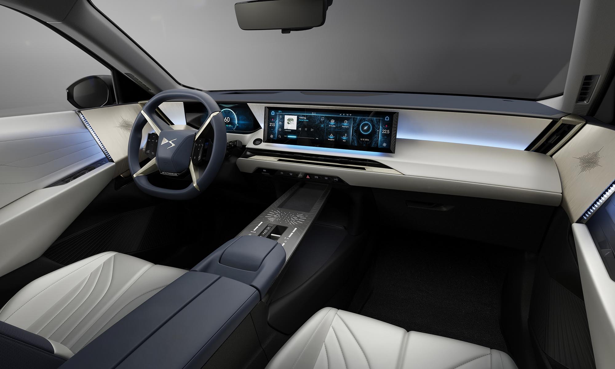 a N°8-ban látott különleges kormánykerékkel és 16 colos érintőképernyővel, amin még ChatGPT-alapú asszisztens is fut. Adaptív fényszórója 520 méterre képes megvilágítani az utat, kamerás rendszer állítja az adaptív lengéscsillapítást, nem marad el az elődjében látott infravörös éjjellátó, és digitális visszapillantó tükör is van.