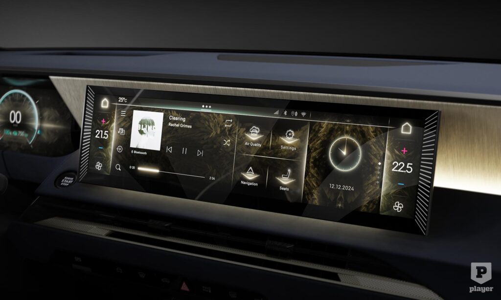 Különleges a négyküllős kormánykerék, ami mögött 10,25 colos kijelző mutatja a műszereket, középre pedig egy 16 colos, szélesvásznú érintőképernyő került, ami a hagyományos kapcsolók nagy részét is szükségtelenné tette.