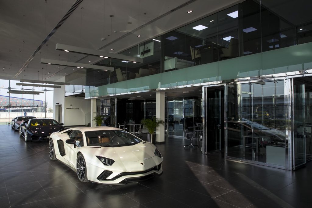 Dubajban egy Lamborghini egyáltalán nem nagy szám, még a rendőrségnek is van belőle néhány, ezért nem véletlen, hogy az olasz gyártó itt nyitotta meg a legújabb, és az eddigi legnagyobb márkakereskedését. A háromszintes épület mérete és berendezése is lenyűgöző, itt 1800 négyzetméteren minden az öklelő bikás márkáról szól.
