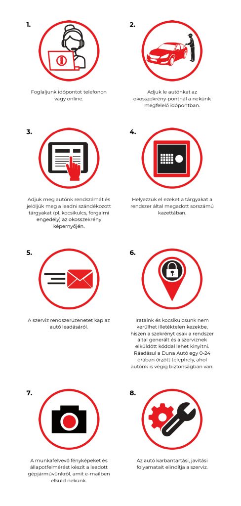- Addig is, amíg a munkafelvevők el tudják kezdeni a szervizfolyamatok ügyintézését, irataink és indítókulcsunk is teljes biztonságban vannak, hiszen a szekrényt csak a rendszer által generált és a szerviznek elküldött kóddal lehet kinyitni és a leadott tárgyakat átvenni. Arról nem is beszélve, hogy a Duna Autó egy 0-24 órában őrzött telephely, ahol autónk is végig biztonságban van.