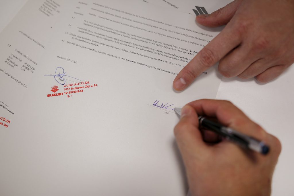 A gépjármű megvásárlására vonatkozó szándéknyilatkozatot a felek a vállalat telephelyén, a kiválasztott gépjármű megtekintését és kipróbálását követően kötik meg, a gépjármű-nyilvántartási jogszabályoknak megfelelő okiratba foglalt adásvételi szerződés aláírásával. Markó Zoltán kiemelte, hogy a járványhelyzetre való tekintettel, az ügyfél igényei szerint, akár kontaktusmentesen, digitális úton is intézheti a két fél a szerződéskötést. A befizetett foglalási díj teljes egészében beleszámítódik a gépkocsi vételárába, abban az esetben pedig, ha az adásvétel valamilyen oknál fogva meghiúsulna, a befizetett összeget teljes egészében visszautalásra kerül.