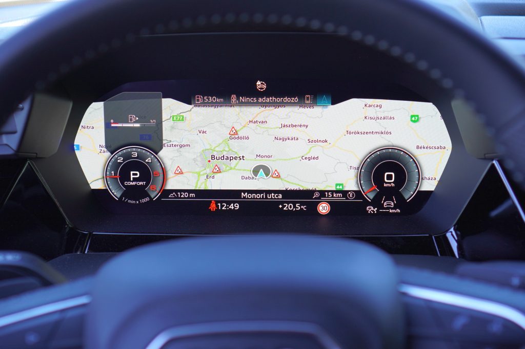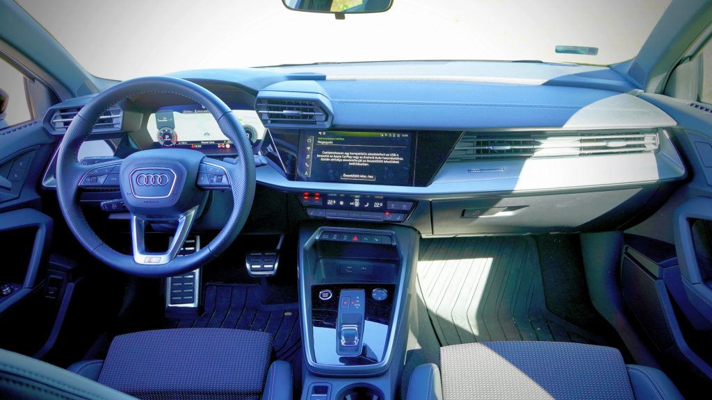 A négy Golf-alapú modell közül legnagyobb meglepetésemre az A3 műszerfala bizonyult a hétköznapokban a legélhetőbbnek. Bár a nagyobb Audikban már a középkonzolon is átvette már az teljhatalmat az érintőképernyő, ebben a kocsiban megtartották az elkülönített klímakonzolt, amivel a fűtés-szellőzés vagy az ülésfűtés sokkal könnyebben beállítható vezetés közben, mintha egy sík lapon kellene tapogatóznunk. (Azért ha lehet egy javaslatunk: a klímablokk vörös visszajelző fényei már generációk óta sütik ki az Audi-sofőrök szemeit; elég lenne oda feleekkora fényerő is.)