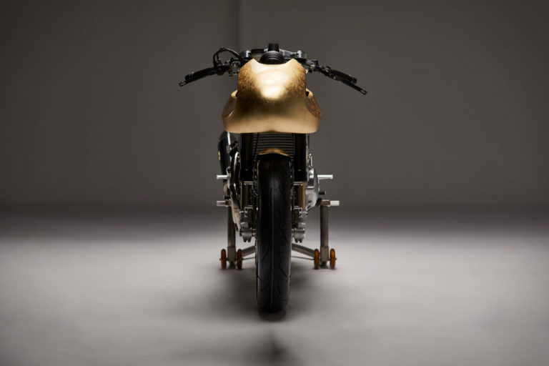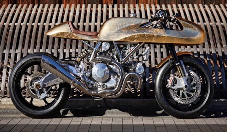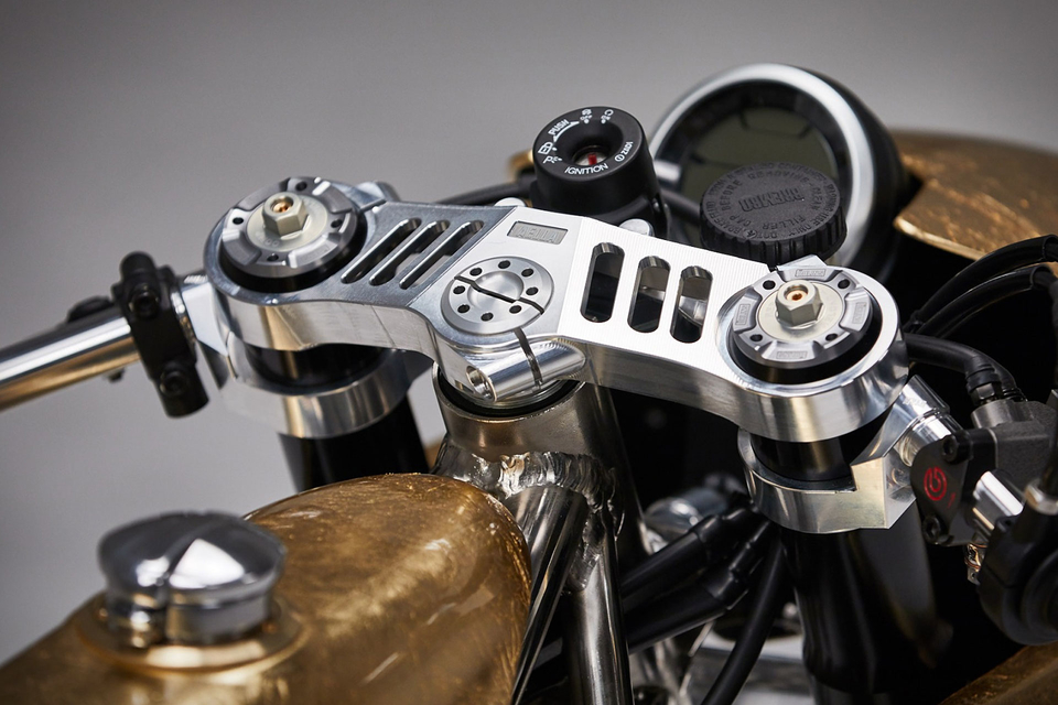 Nyilvánvaló, hogy a célcsoport az igazi motorfanatikusok voltak, hiszen az egyedi Ducati Scrambler nem egy szégyenlős darab: a bronz borítású karosszéria alatt szinte teljesen meztelen, tökéletes rálátást biztosítva a motor belsőségeire, köztük az L-twin motorra (ami amúgy V-twin, csak a Ducati szeret különcködni a megnevezéssel).