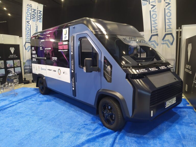 Ezen belül meglepően sokféle lengyel gyártót találtunk, amik önmagukban lefedik az elektromos járművek és munkagépek teljes spektrumát. Az egyik csodált példány ez a lengyel gyártású, 700 méteres mélységben dolgozó, 14 személyt cipelő bányagép volt: