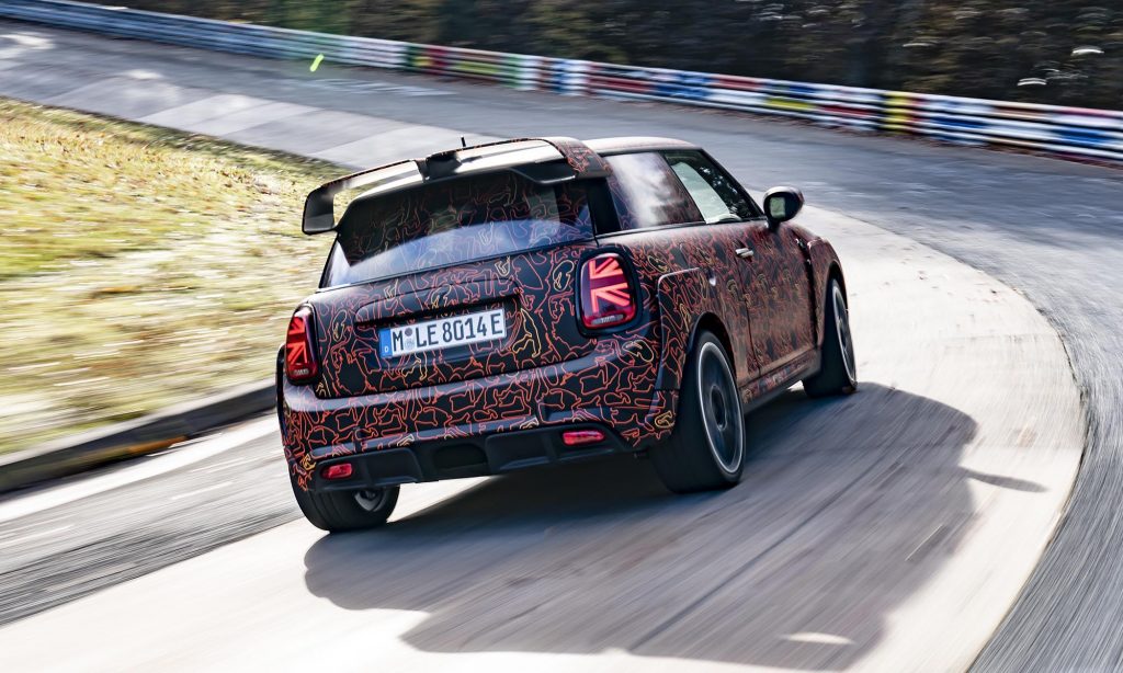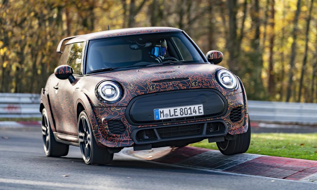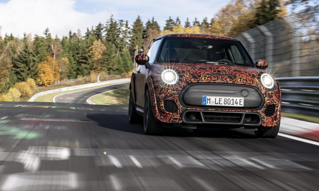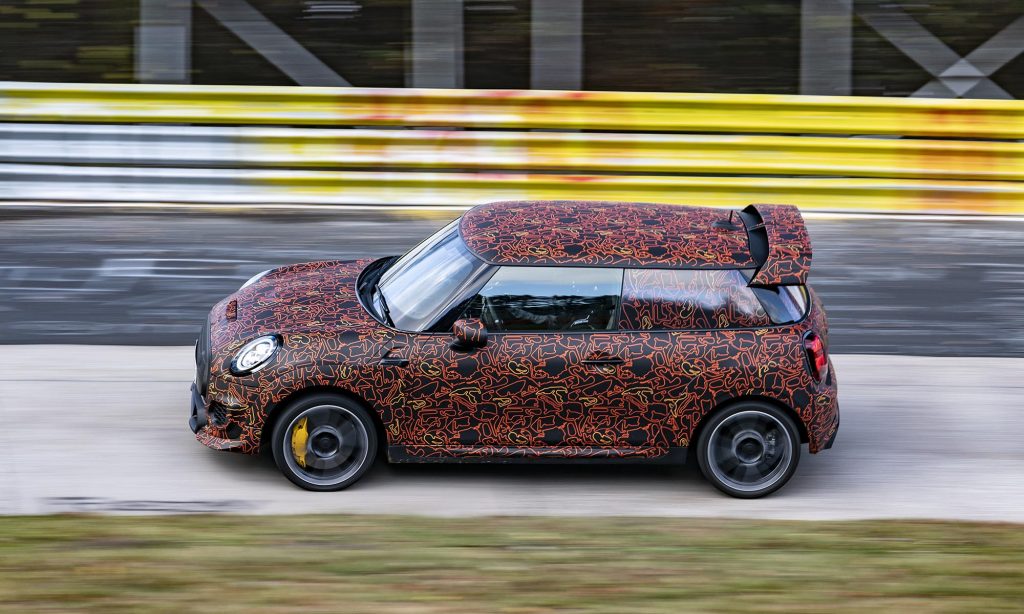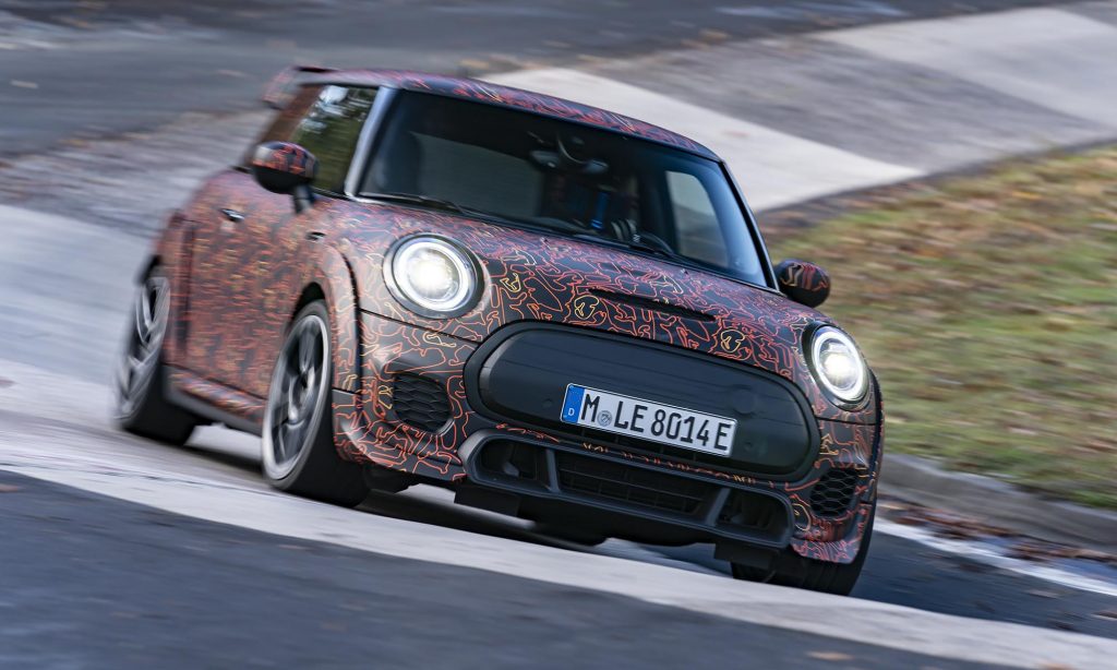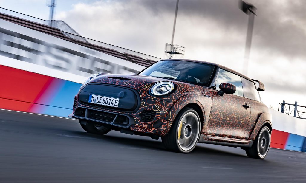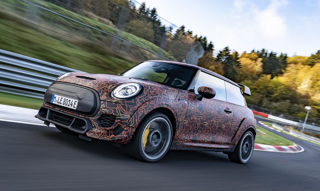 és a limitált szériás John Cooper Works GP szélesített sárvédőivel és nagy hátsó légterelőjével a Nürburgringen. Mást egyelőre nem árultak el róla, ezért nem tudni, hogy a 231 és 306 lóerős benzines modellhez képest milyen erős lesz, de izgatottan várjuk az eredményt.