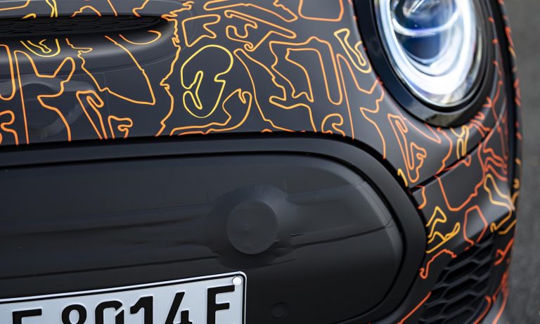 A most közzétett képeken egy álcázott MINI hasít az elektromos Cooper SE hűtőmaszkjával