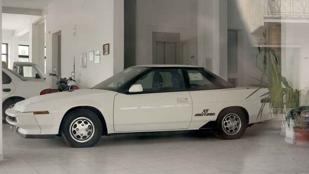 A szalonban nemcsak Impreza árválkodik, hanem néhány Justy és egy XT Turbo is. Az 1,8 literes, 136 lóerős turbós motorral szerelt sportkupé célja alighanem az volt, hogy bevonzza az érdeklődőket. Úgy tűnik, hogy nem sok sikerrel járt.