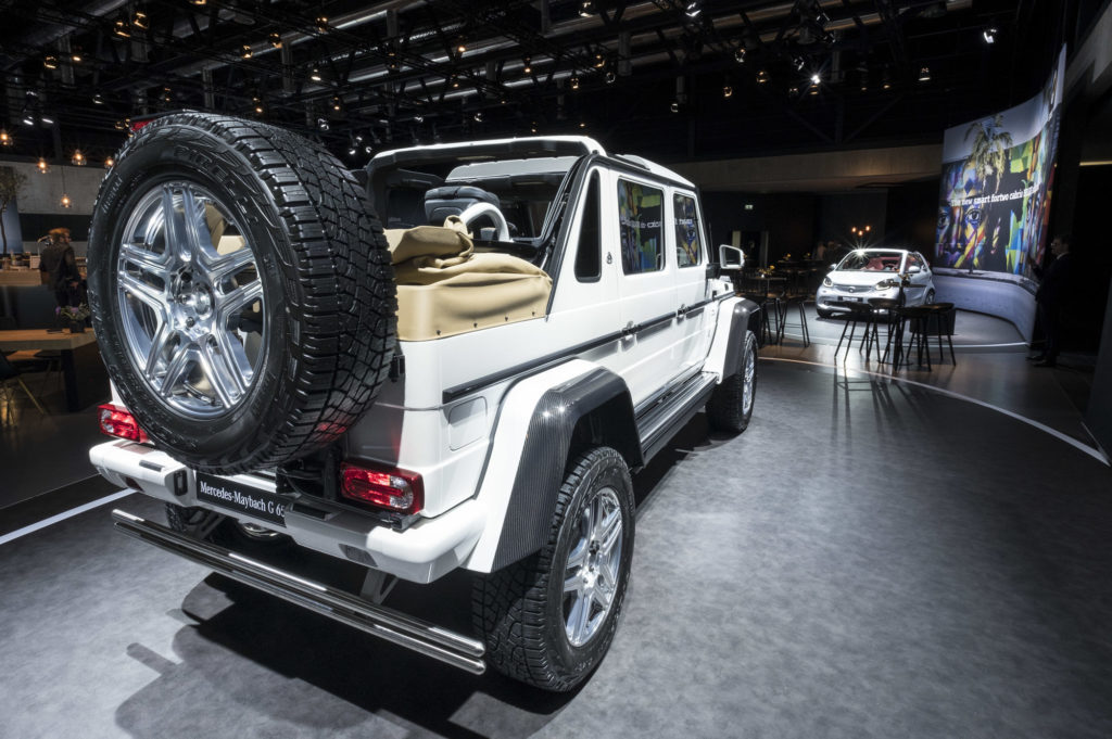 Ott volt még például a Mercedes jövendő pick-up modellje, az X-osztály koncepciója, a másik érdekesség pedig a legfényűzőbb G-osztály, egyben a Maybach első terepjárója, a Mercedes-Maybach G 650 Landaulet. A nyitható tetős terepjáró 22 colos kerekeken gurul, V12-es motorja 630 lóerős. Ez egy igazi óriás, elég csak megnézni, milyen röhejesen kicsik az emberek mellette.