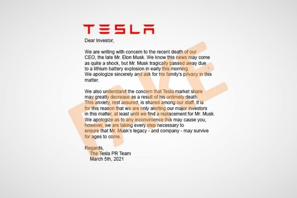 Még egy sajtóközleményt is hamisítottak a Tesla PR-részlegének nevében, pedig a Teslának nincs is PR-részlege.
