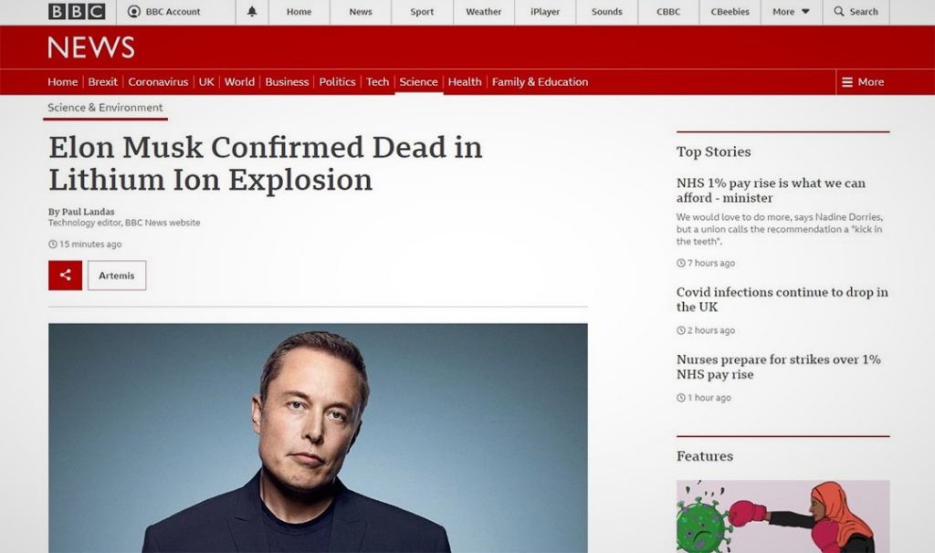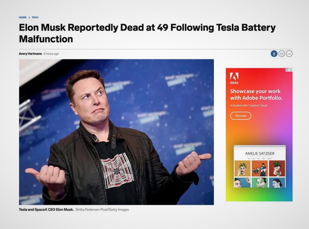 Gyorsan terjedt a hír, hogy Elon Musk életét vesztette egy felrobbant akkumulátor miatt, ami persze nem igaz, de a Tesla-részvények árfolyamát azért megingatta – valószínűleg ez is volt a cél.