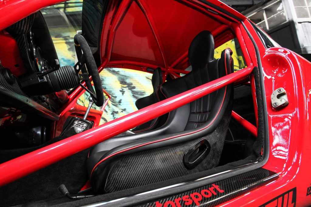 A 911 RS Evolution 3.5 névre keresztelt sportkocsi karosszériáját teljesen újratervezték, és szénszállal és üvegszállal erősített anyagból gyártották le. A könnyített ajtókban lévő oldalüvegeket megerősített plexire cserélték, így az alaposan átépített Porsche mindössze 940 kilogrammot nyom. Még a 80 literes üzemanyagtank is szénszálas anyagból van.