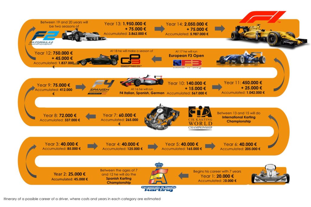 A gokarttal kezdődik minden (junior→szenior→nemzetközi kategóriában), aztán jöhet az F4 (vagy a Formula Renault), majd az F3 és az F2, végül pedig az F1,