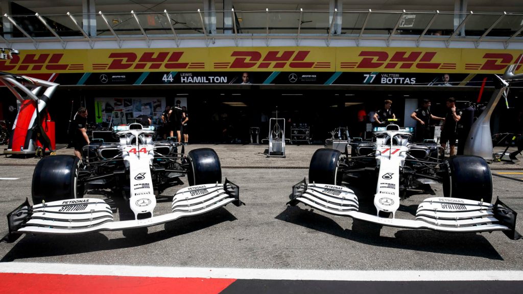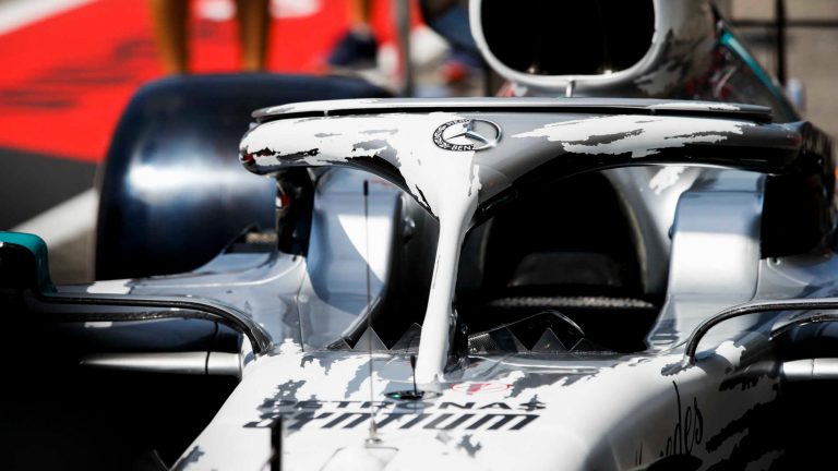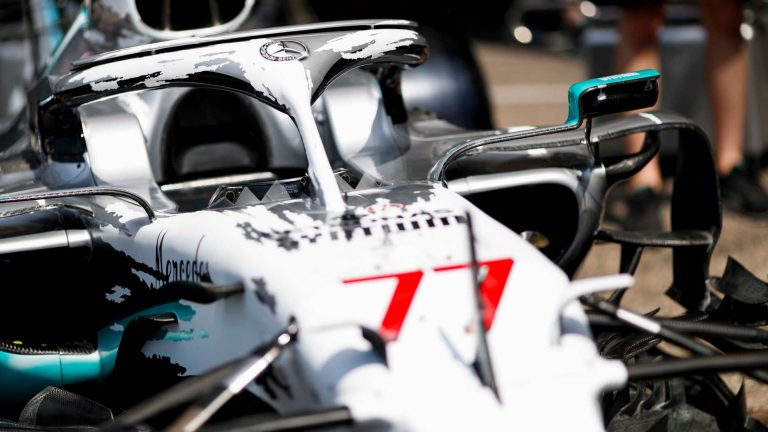 Eddig csak részleteket mutatott a Mercedes a hétvégi ünnepi festéséről, most viszont itt van teljes egészében a félig-meddig hófehér W10-es, ami nagyon elegánsra siekeredett, legalábbis az eleje: