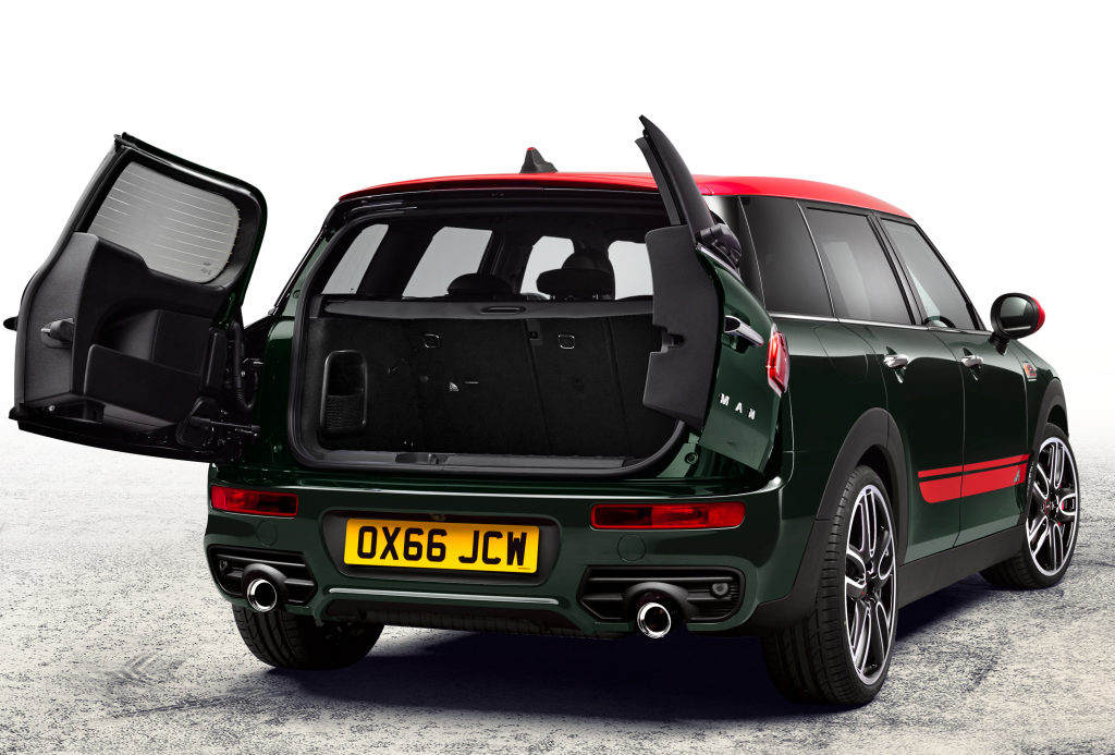 A hátul dupla csomagtér-ajtós, tehát összesen hatajtós Clubman a legújabb MINI, és egészen eddig nem volt igazán gyors sportváltozata. Ezt elégelhették meg a gyáriak, mert most elkészült a John Cooper Works kivitel. Mind minden más modelljük, amely a JCW emblémát viseli, úgy a Clubman is kétliteres, négyhengeres, turbós benzinmotort kapott 231 lóerővel és 350 Nm-rel. De most először párosították ezt a motort az új All4 összkerékhajtással, amihez a hatfokozatú kézi helyett nyolcsebességes automatát lehet kérni. A Clubman JCW így családi autónak elég gyors, 6,3 másodperc alatt szalad nulláról százra, az opciós 19 colos kerekekkel, Brembo fékekkel, sportkipufogóval és sportülésekkel pedig elég vagányul is néz ki.