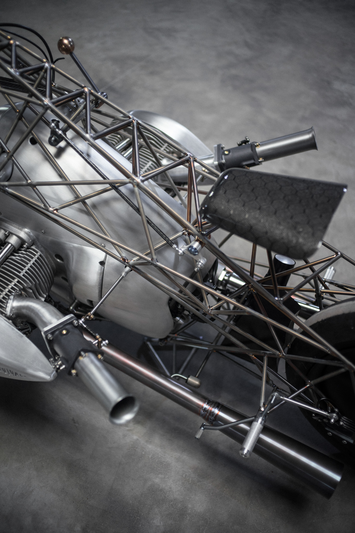 A Revival Cyclesszel közösen épített Revival Birdcage Motorbike nem valamilyen korábbi BMW-motorból készült, hanem egy teljesen egyedi konstrukcióról van szó, amit a BMW Motorrad boxermotorja köré építettek. Sokat mondjuk nem kellett építeni, hiszen a "madárkalitka" annyira nyers, mint Ricky Gervais, gyakorlatilag csak egy benzintankból és néhány vázként szolgáló titánrúdból áll.