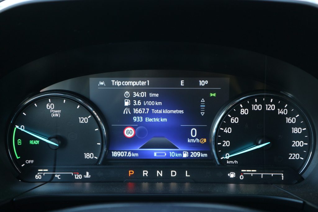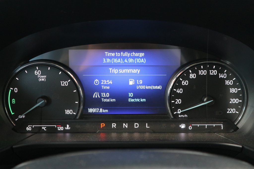 A Kugában kifejezetten kellemes, érces motorhang festi alá a gyorsításokat, a fordulatszám ráadásul vissza-visszaesik közben, ami még a jó öreg váltási élményt is megadja a fülnek. A kormányzás pontos, a futómű ügyes: a Kuga PHEV-vel jó gyorsulgatni, gyorsan autózni. A fogyasztás pedig hosszú távon valahogy így alakul, ha az ember nagyjából 40% autópálya, 30% országút, 30% város arányban használja a kocsit és kifejezetten dinamikusan, hajtósan vezet (én vagyok az az ember):
