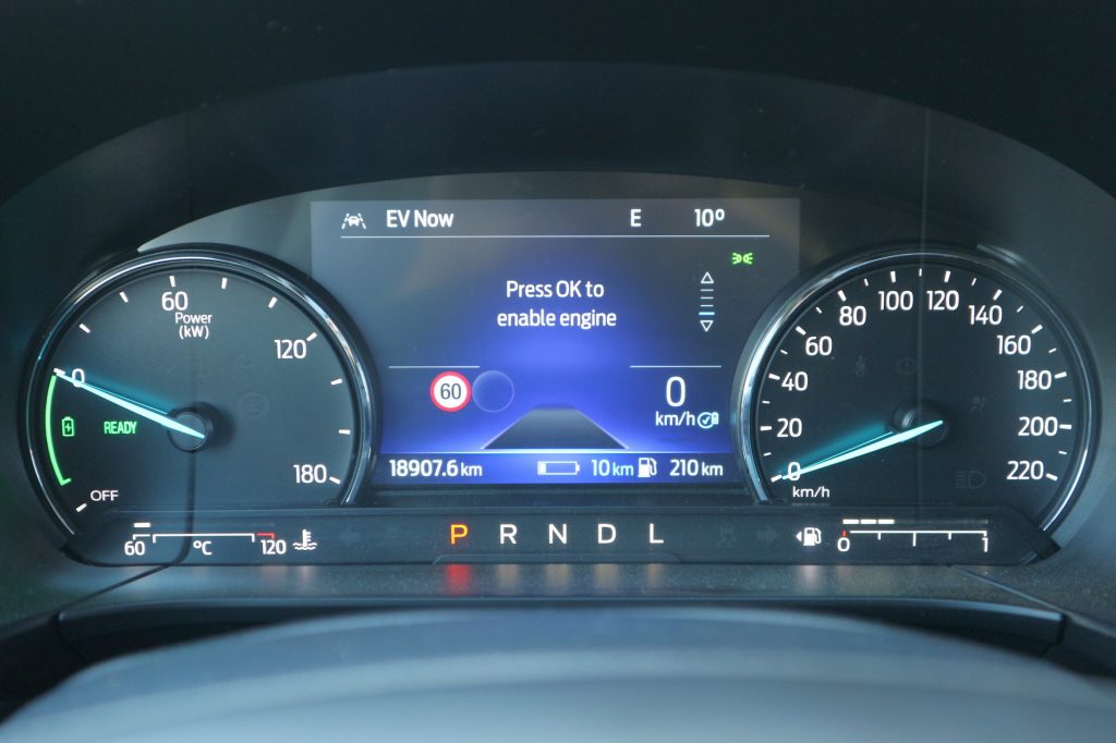 Ha megnyomjuk az OK-t, van benzines rásegítés, ha kell, ha nem nyomjuk meg, csak a villannyal gazdálkodhatunk. Ennek akkor lesz különösen nagy jelentősége, ha majd a mainál is sokkal több no-go zónát jelölnek ki a nagyvárosokban a belsőégésű motorral hajtott járművek számára.