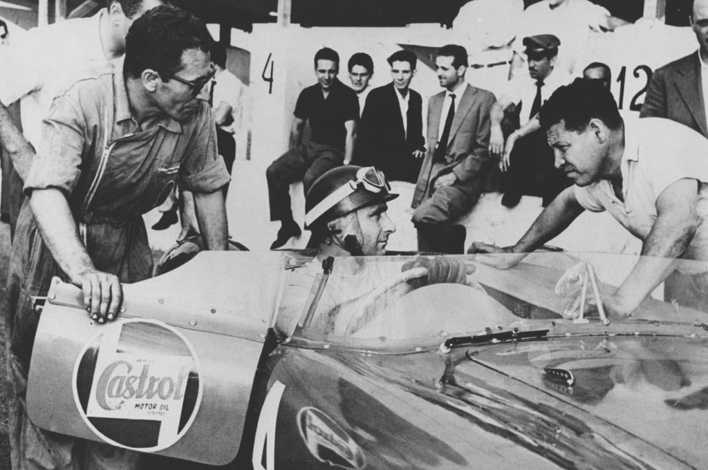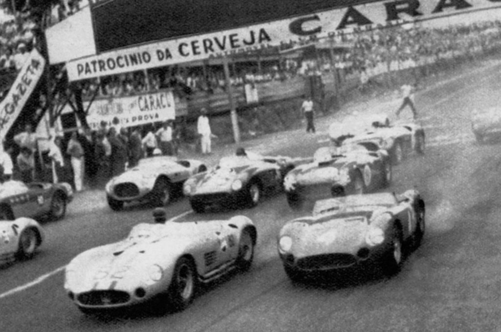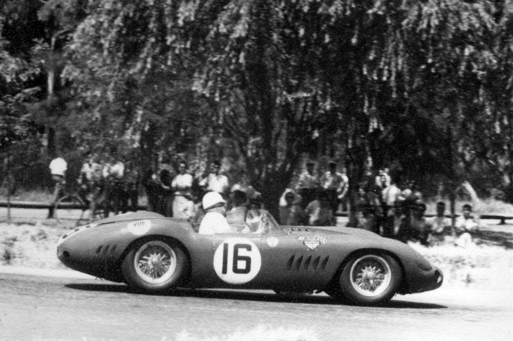 Alfa Romeóval, Ferrarival, Maseratival és Mercedesszel is versenyzett Juan Manuel Fangio, aki vagy egy évtizedig nem talált legyőzőre, öt világbajnoki címet szerzett a Formula–1-ben. Mellette pedig privát csapatokkal is indult, olyan versenyautókkal, mint amilyen ez a Maserati 300 S. 1956-ban épült a huszonhat példány egyikeként, és abban az évben gyári gépként futott, majd 1957-ben egy privát csapatnak adták el. Fangio ekkor ült bele, és meg is nyert egy portugál, majd két brazil futamot, előbb Sao Paolóban, aztán Interlagosban.