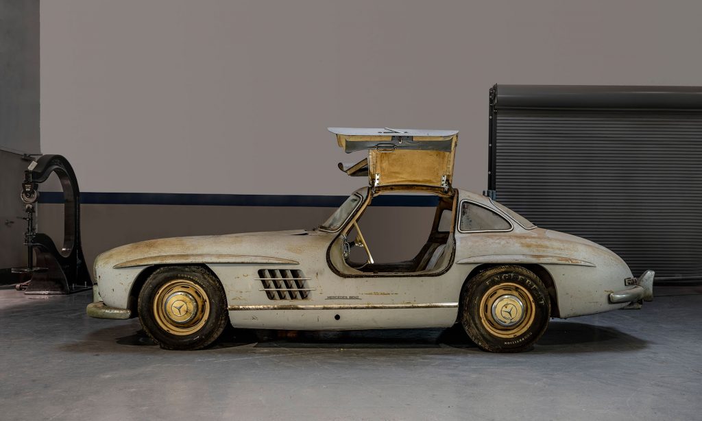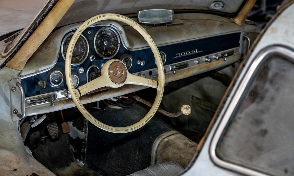 A Mercedes-Benz veterán autókkal foglalkozó Classic részlege talált rá erre a gyönyörű és szinte hiánytalan 300 SL-re, amit több mint fél évszázadig tároltak egy garázsban. A látszattal ellentétben nem egy romos autóról van szó, hiszen a karosszériája, az üvegek, a szürke bőrbelső, a motor, a kerekek, de még a gumiabroncsok is mind eredetiek.