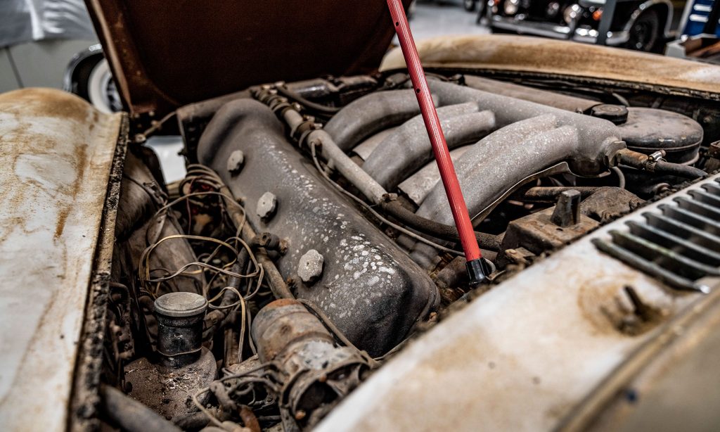 és tíz évig használták is, aztán kivonták a forgalomból. Az eredeti színe kék volt, de ezt lecsiszolták róla, és előkészítették a fényezésre. Már csak az eredeti tulajdonosa mondhatná meg, miért, de ekkor félbehagyták a felújítását, és a sportkocsi fél évszázados álomra szenderült.
