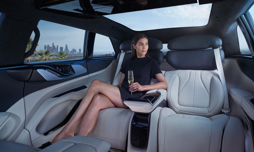 A jobb első utas külön képernyőt kapott, ahol fogyaszthatja a multimédiás tartalmakat, és mind a négy ajtóra került még egy érintőkijelző, amivel az üléseket és a klímát lehet személyre szabni.