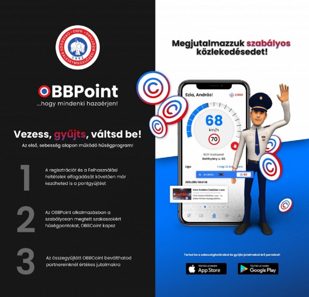 Az ORFK Országos Balesetmegelőzési Bizottság augusztus elején áll elő az OBBPoint nevű alkalmazásával. Ez annyit tud, hogy