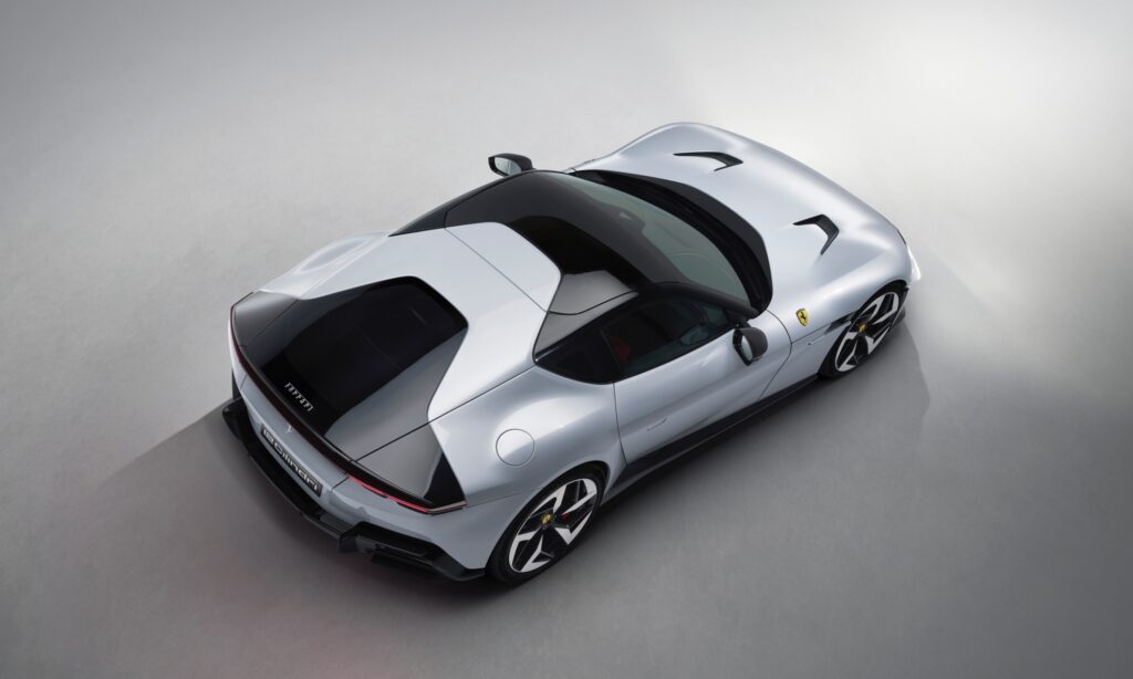 Határozott oldalvonala szintén halványan emlékeztet a 365 GTB/4-re, de Flavio Manzoni csapata a modern Ferrarik formanyelvéhez igazodó dizájn rajzolt. A Berlinetta változaton sötétített tetőablakon át árad be a fény az utasérbe, a Spider nyitható keményteteje csak 60 kilogrammal növeli az autó súlyát.